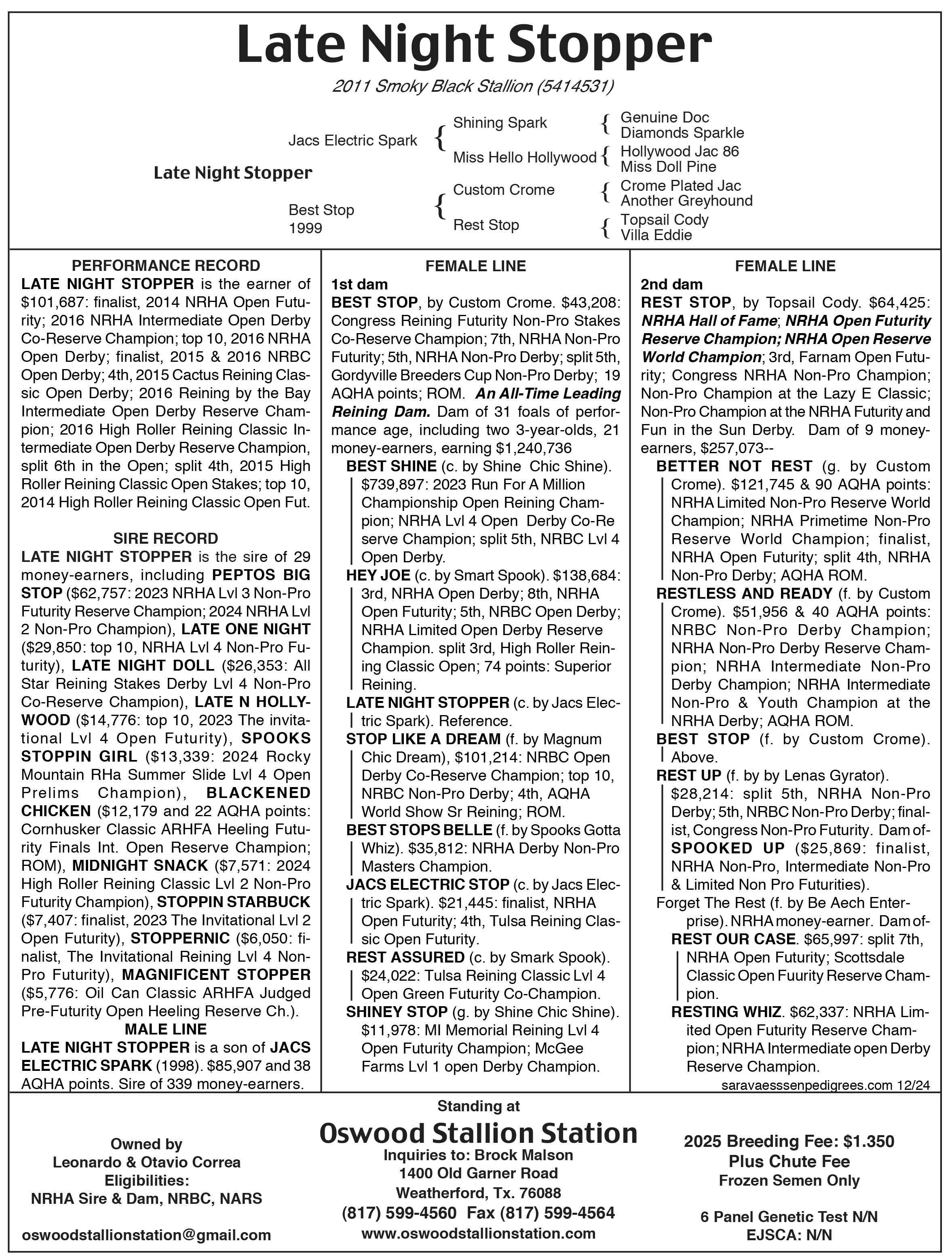 Standing at Oswood Stallion Station, Weatherford, Texas