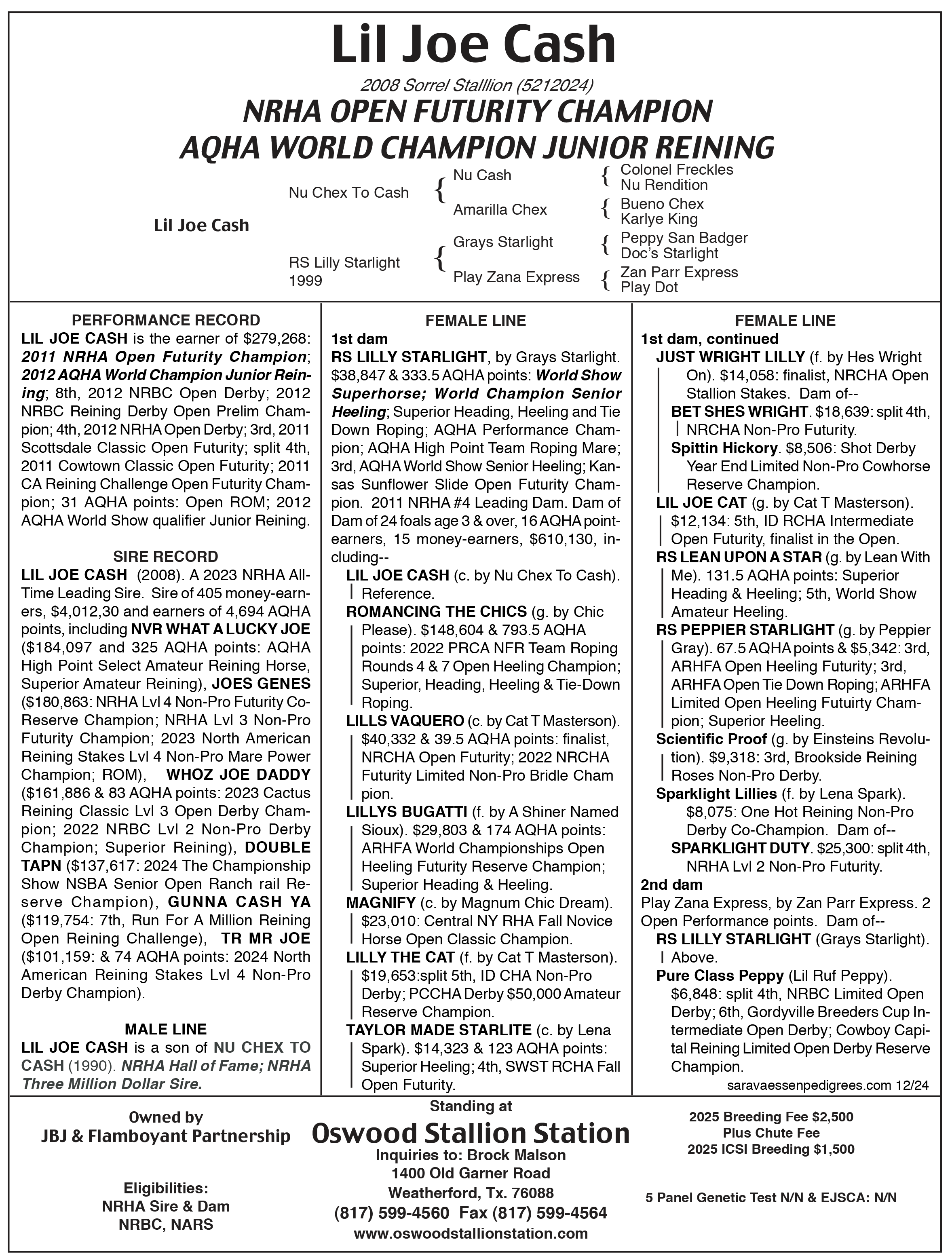 Standing at Oswood Stallion Station, Weatherford, Texas