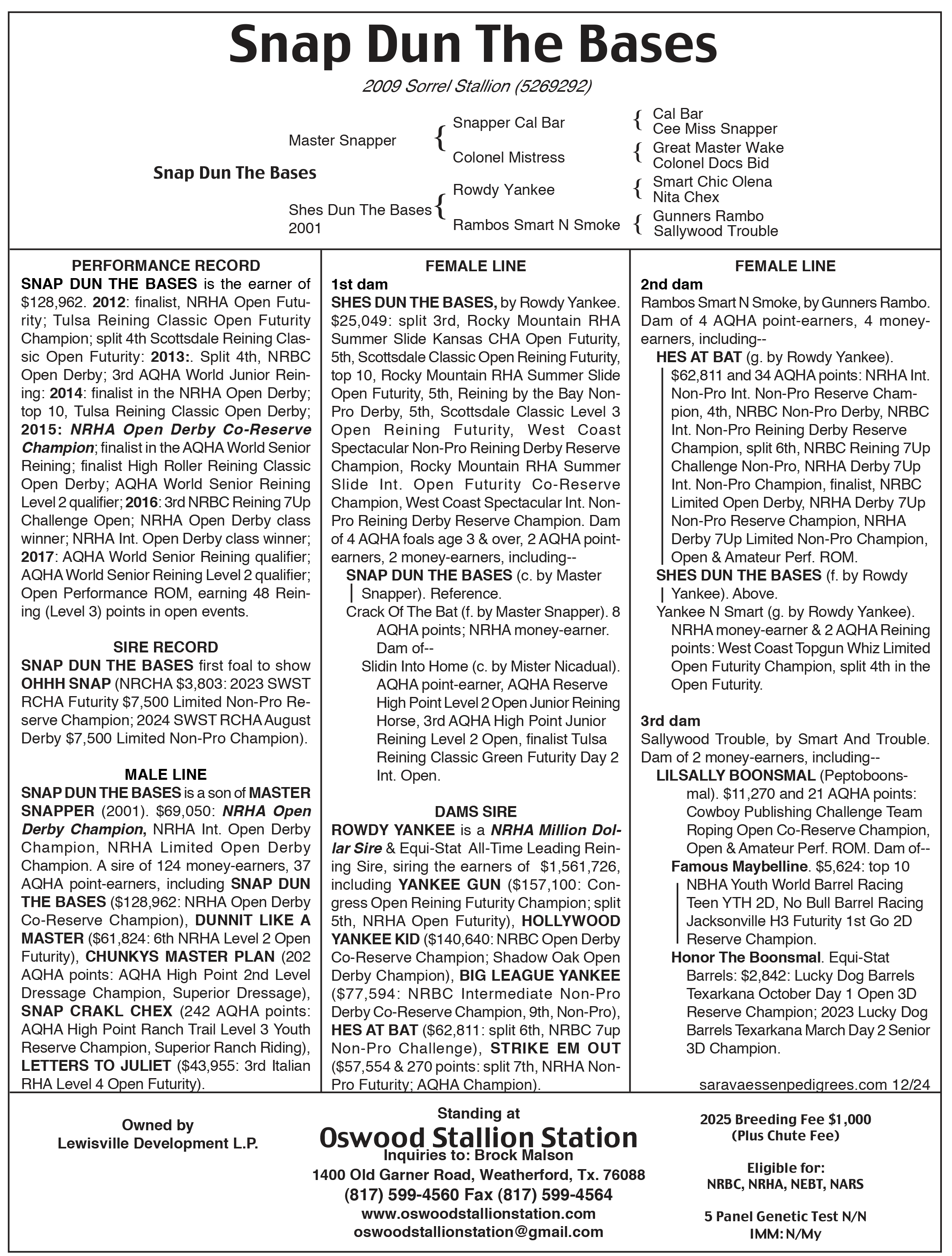 If stallion has early booking discount, ALL fees are due with contract submission. A 3.5% credit card processing fee will be included in the final total. Be sure to review your contracts additional terms & email us your mare’s registration papers if not already on file: oswoodranchoffice@gmail.com