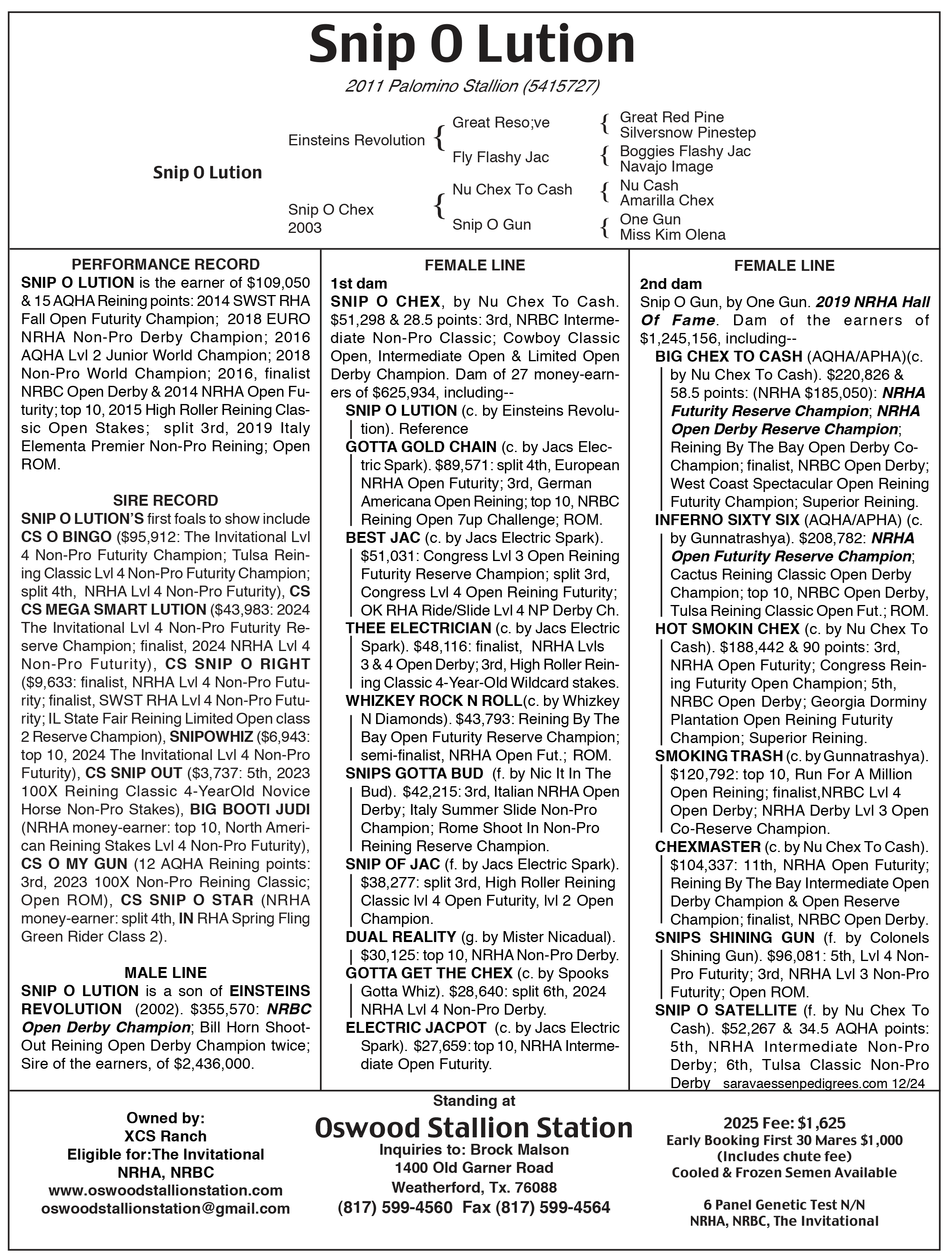 Standing at Oswood Stallion Station, Weatherford, Texas