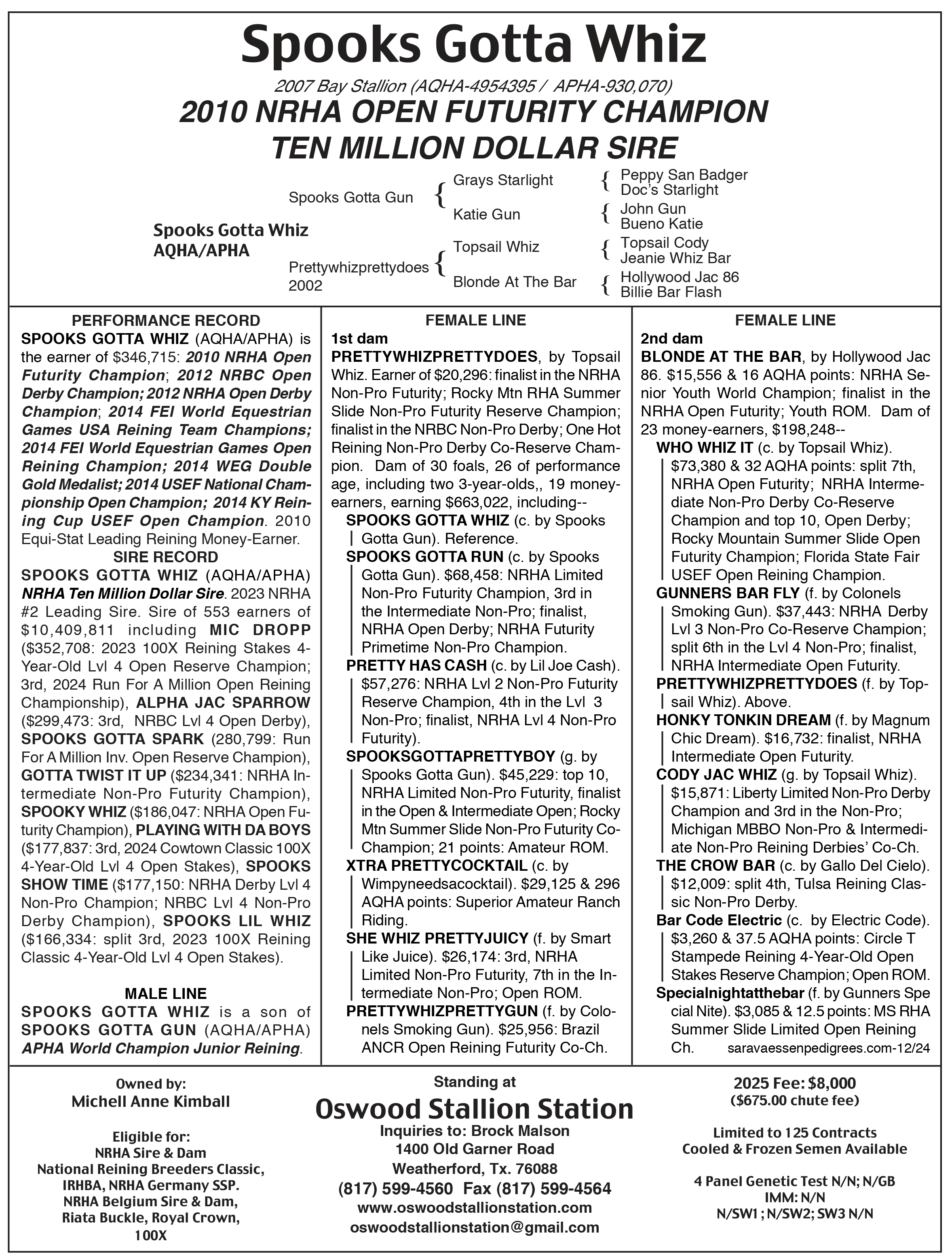 Standing at Oswood Stallion Station, Weatherford, Texas