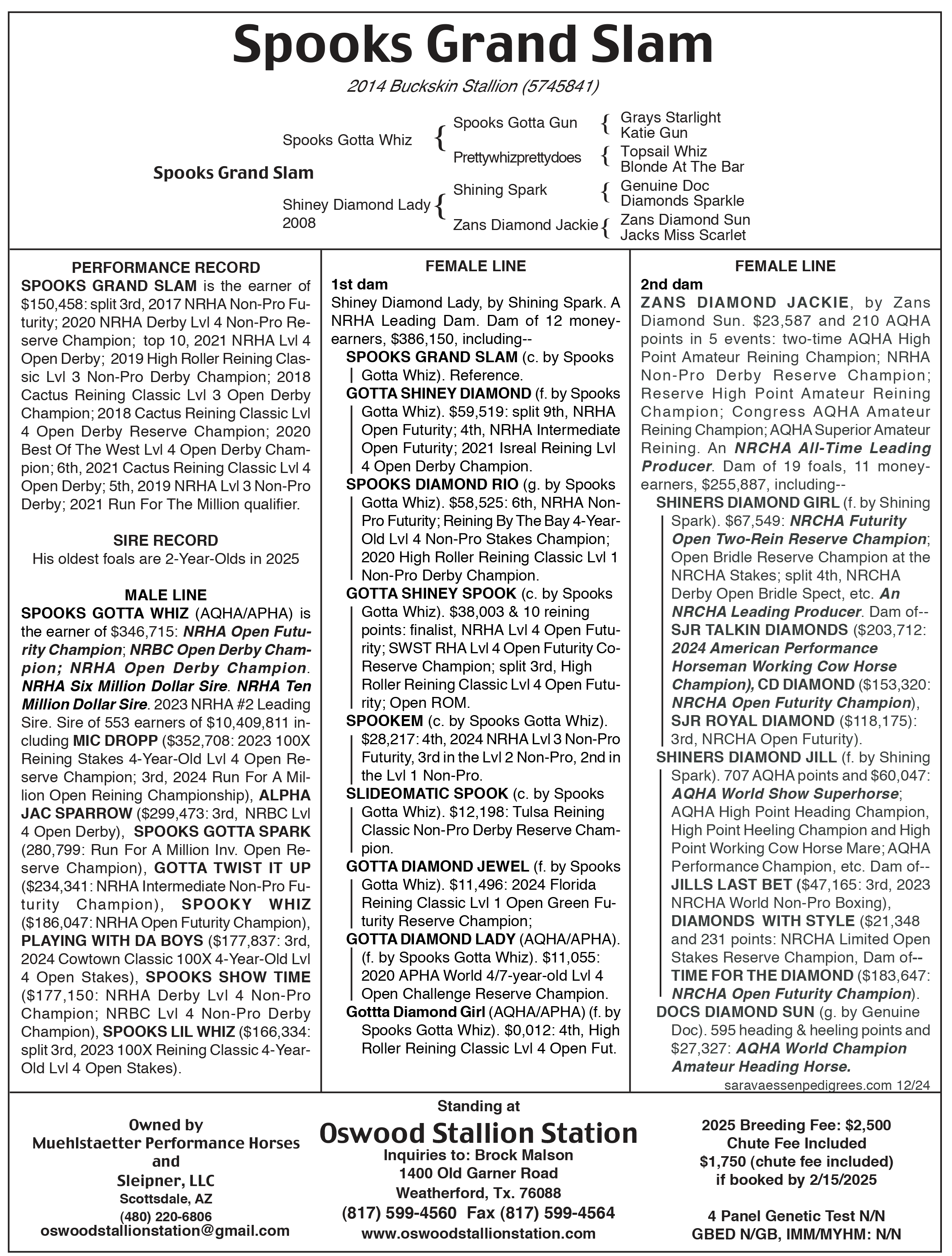 Standing at Oswood Stallion Station, Weatherford, Texas